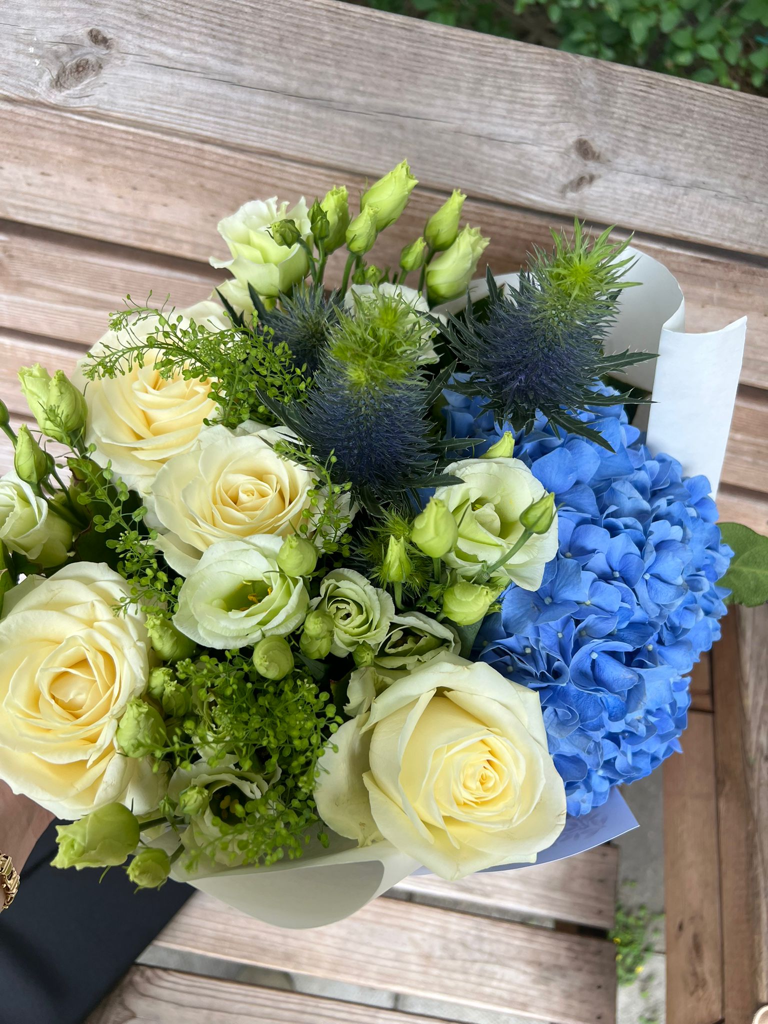 Bold Blue Hydrangeas to symbolise gratitude and growth