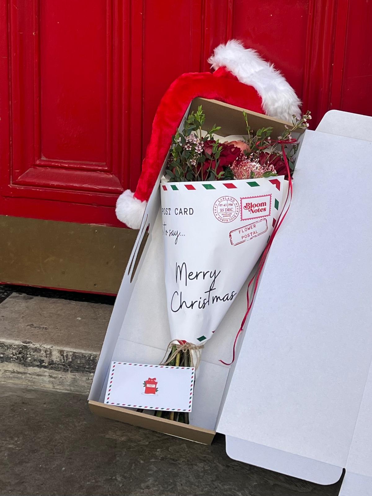 Celebrate Christmas with our hand-designed bouquet, made with the freshest flowers available and wrapped in our exclusive “Merry Christmas” postcard sleeve. It also comes with a festive notecard for you to add a personal message, making it a perfect gift for the holiday season.